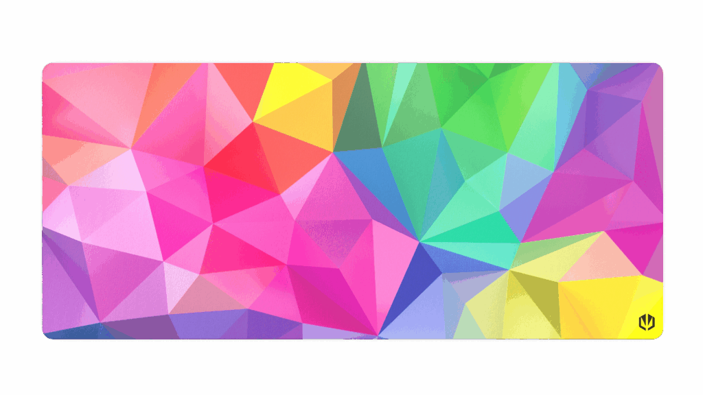 Das Endorfy Crystal Spectrum XL beeindruckt auf den ersten Blick mit seinem lebendigen, kristallähnlichen Muster, das in jedem einzelnen „Kristall“ eine andere Farbe beinhaltet. Dieses Design verleiht jedem Schreibtisch eine individuelle Note und hebt sich deutlich von herkömmlichen Mauspads ab. Keine Sorge, wer kein Fan von den Farben ist, kann natürlich auch zwischen den anderen Varianten wählen. Dazu aber später mehr.